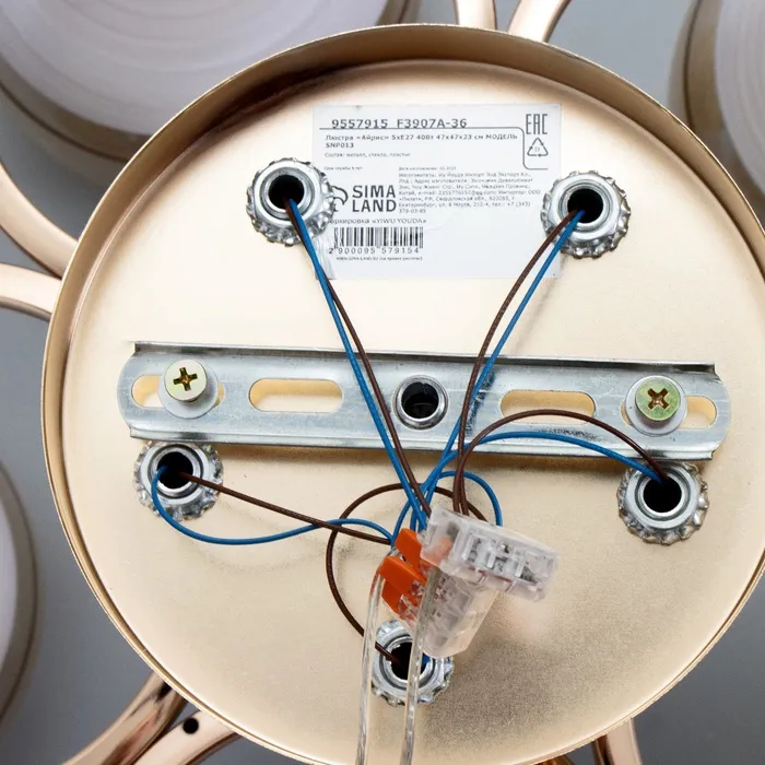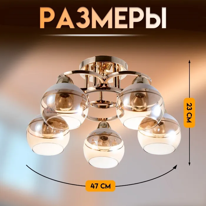 Светильник потолочный BayerLux «Айрис», 5хЕ27, 40 Вт, золото, 47×47×23 см — Характеристики