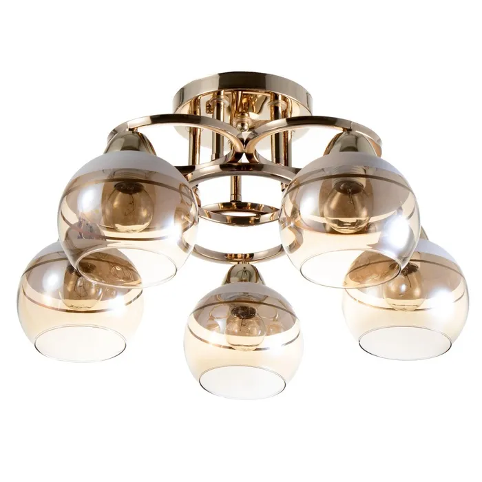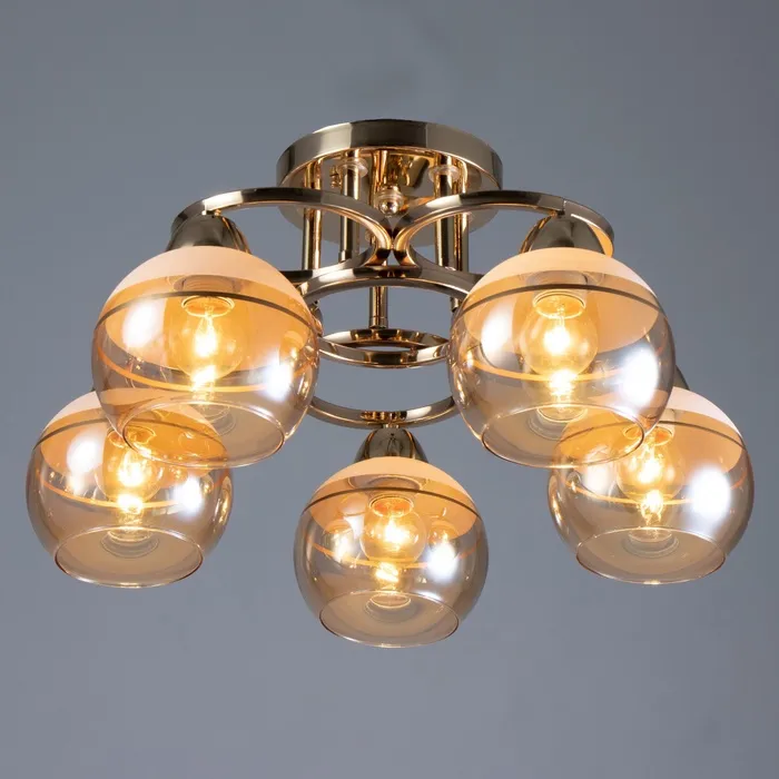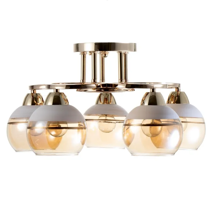 • Современный дизайн: золото основание и полусферический плафон из стекла придают люстре стильный и минималистичный вид, идеально подходящий для спален.