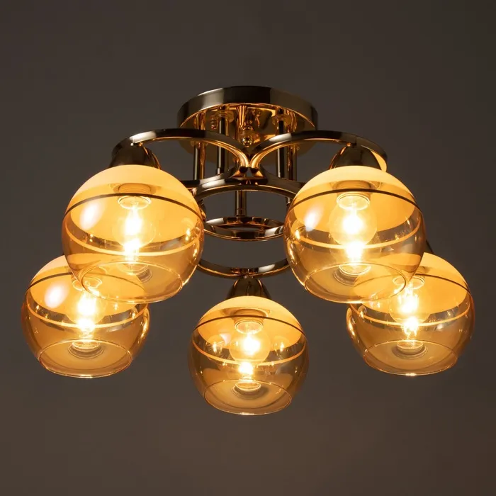 Светильник потолочный BayerLux «Айрис», 5хЕ27, 40 Вт, золото, 47×47×23 см