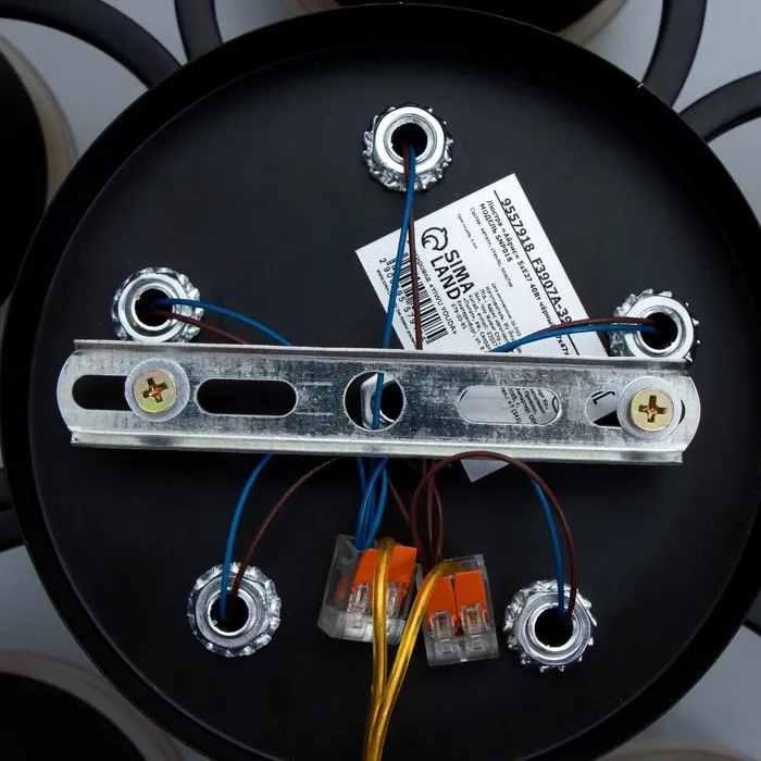 - Универсальность: люстра подходит для натяжных потолков (при использовании светодиодных ламп), что делает её универсальным решением для любого интерьера.