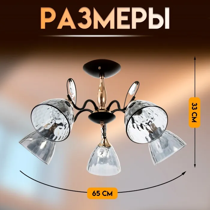 Светильник потолочный BayerLux «Анабель», 5хЕ27, 40 Вт, чёрный, 65×65×33 см — Характеристики