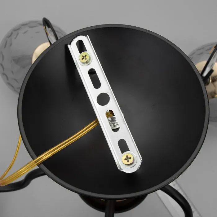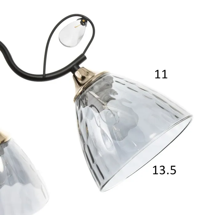- Современный дизайн: черное основание и конусообразные плафоны из тонированного стекла придают светильнику стильный и элегантный вид, идеально подходящий для гостиных, кухонь и спален.