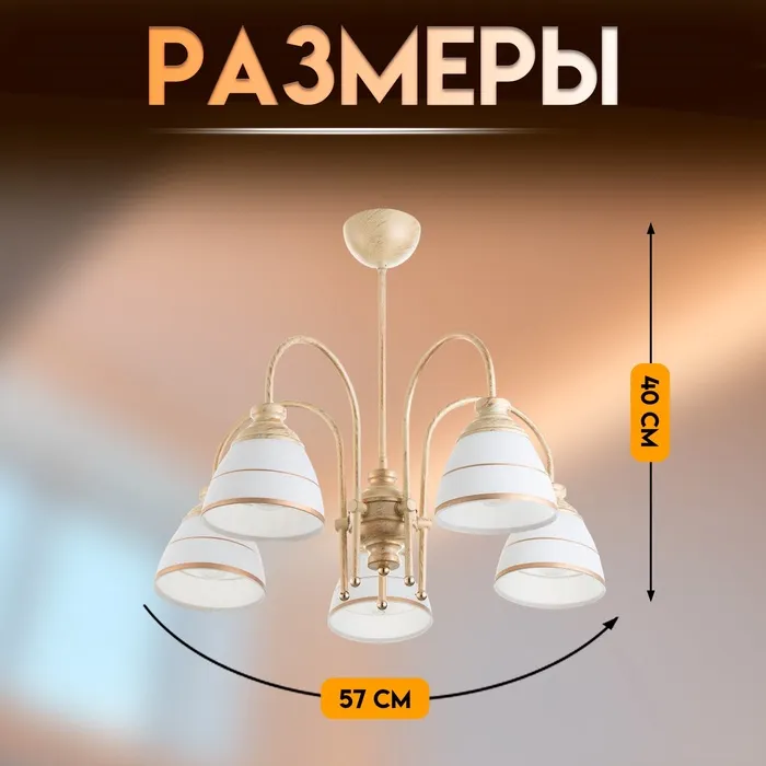 Светильник потолочный BayerLux «Дэфия», люстра 5×Е27, 40 Вт, золото, 57×57×40 см — Характеристики