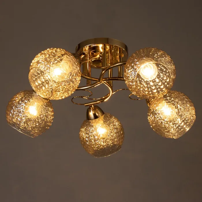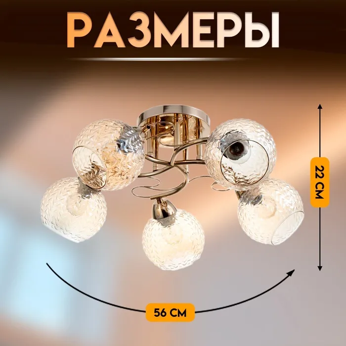 Светильник потолочный BayerLux «Эрион», 5×Е27 40 Вт, золото, 56×56×22 см — Характеристики