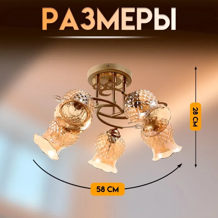 Светильник потолочный BayerLux «Фрези», 5×Е27, 40 Вт, золото, 58×58×28 см — Характеристики