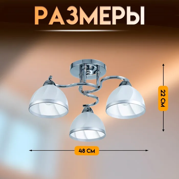 Светильник потолочный BayerLux «Каспиан» 3×Е27, 40 Вт, ×ром, 48×48×22 см — Характеристики