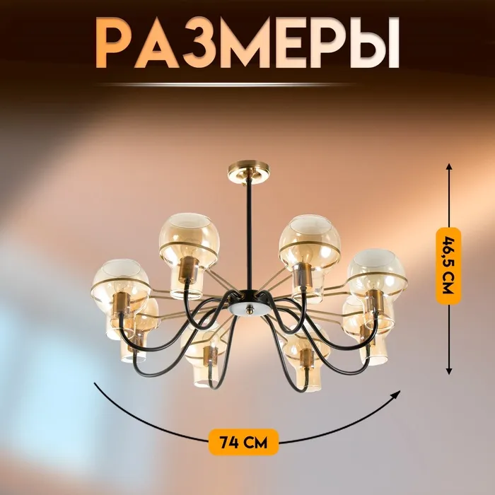 Светильник потолочный BayerLux «Кэган», люстра 8×E27 40 Вт, чёрный, 74×74×46.5 см — Характеристики