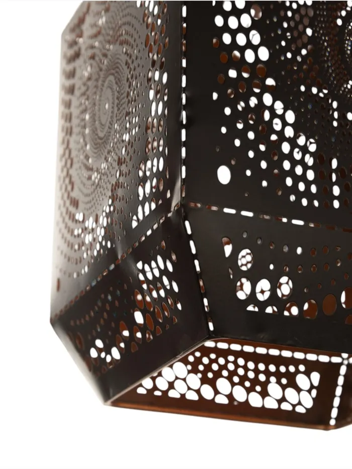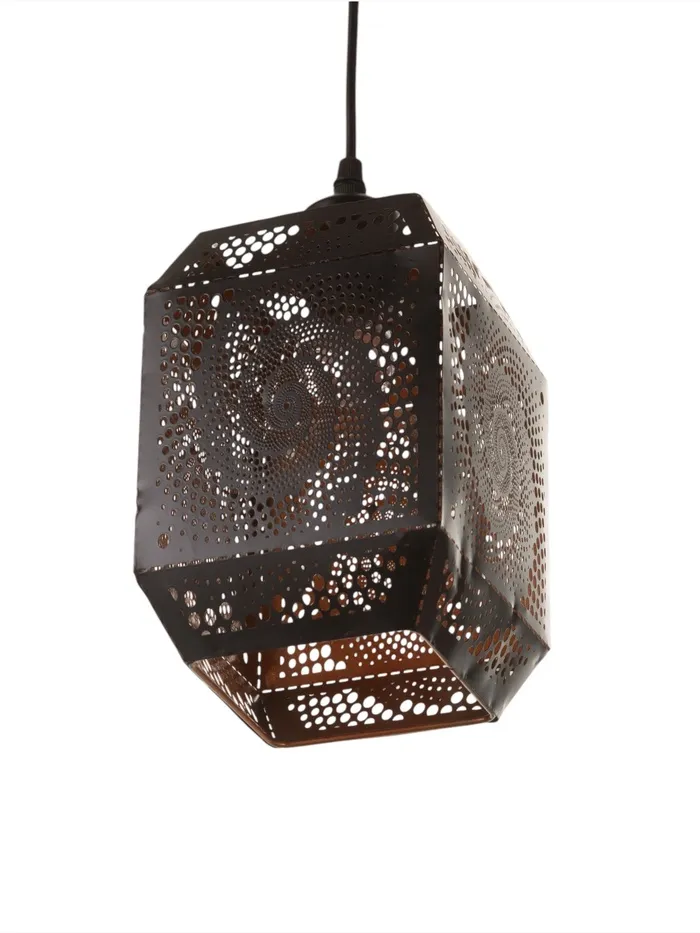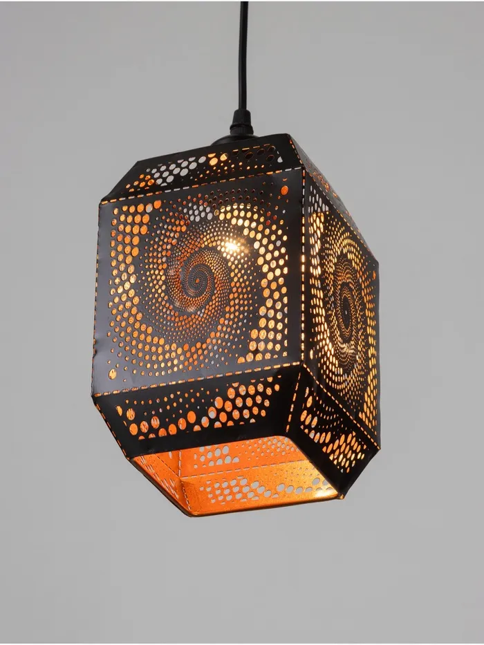 Светильник оснащен одной лампой накаливания с цоколем E27 и мощностью 40 Вт, что обеспечивает яркое освещение небольшой площади — около 2 квадратных метров. Основание светильника изготовлено из металла, что придает ему прочность и долговечность. Плафон выполнен в форме оригинального геометрического узора, подчеркивающего стиль и характер изделия.