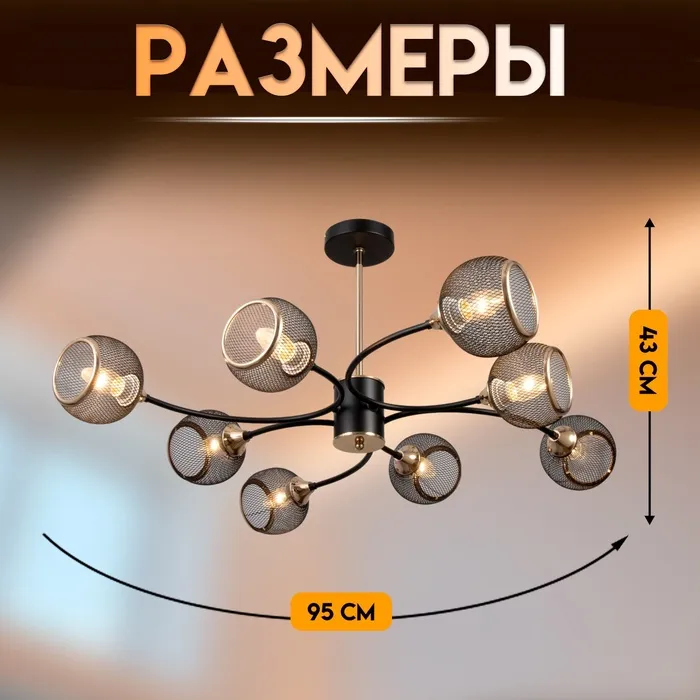 Светильник потолочный BayerLux «Круэлла», люстра 8хЕ27, 40 Вт, чёрный 95х95х43 см — Характеристики