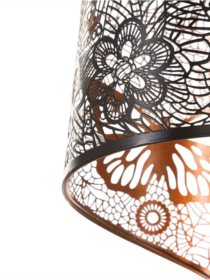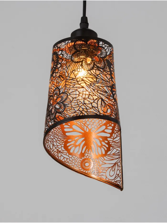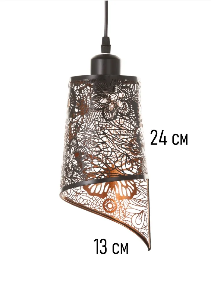 - Уникальный дизайн: ажурный металлический абажур с детализированным узором придаёт люстре эксклюзивный и стильный вид.
