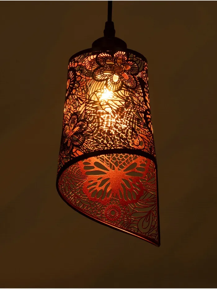 - Игра света и тени: ажурный узор позволяет свету проникать через абажур, создавая красивые световые узоры на стенах и потолке, что добавляет уюта и атмосферности.