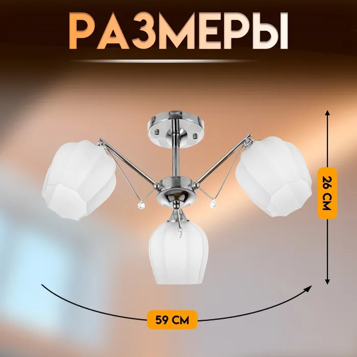 Светильник потолочный BayerLux «Миранда», люстра 3хЕ27, 40 Вт, хром, 59х59х26 см — Характеристики