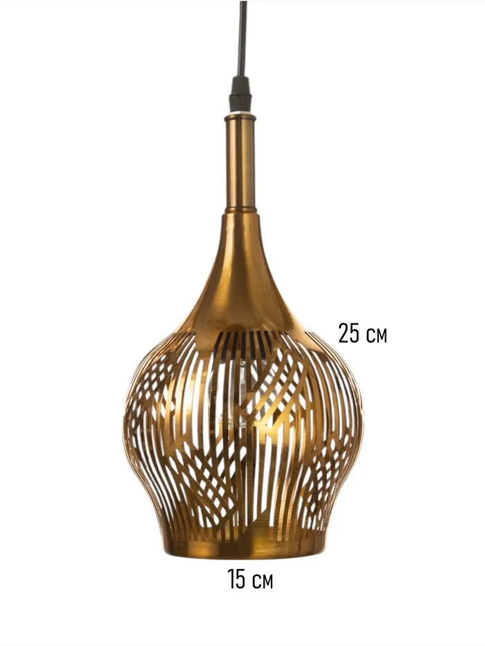 - Уникальный дизайн: форма светильника напоминает каплю или грушу с ажурным узором, что придаёт ему оригинальность и элегантность.