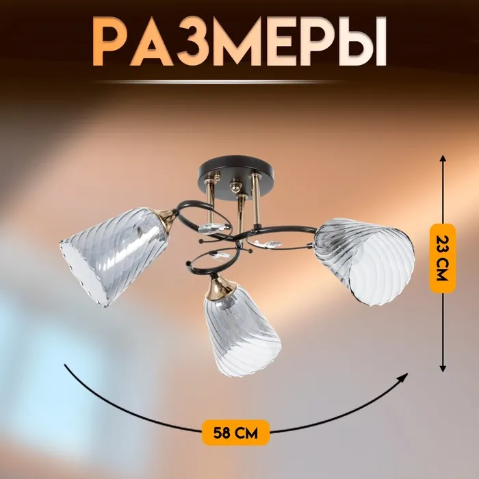 Светильник потолочный BayerLux «Рони», 3×Е27 40 Вт, чёрный, 58×58×23 см — Характеристики