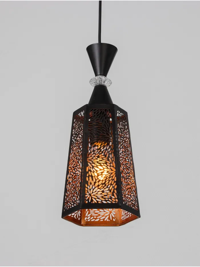 Сочетание индустриального стиля и элегантности. Его необычный дизайн, вдохновленный узорами и принтами, притягивает взгляд и добавляет интерьеру оригинальности. Выполненный в черном цвете , светильник станет центральным элементом любого помещения, будь то кухня, ресторан или кафе.
