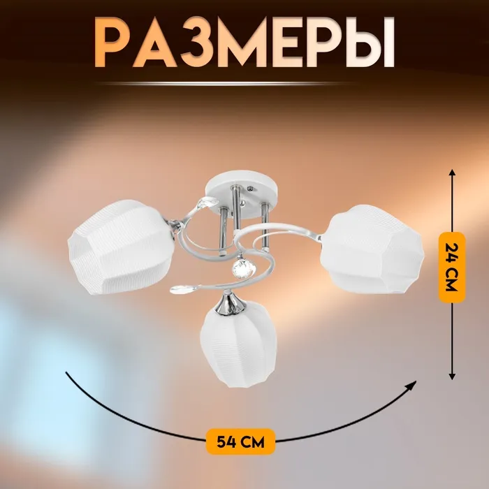 Светильник потолочный BayerLux «Зарина», 3×Е27 40 Вт, белый, 54×54×24 см — Характеристики