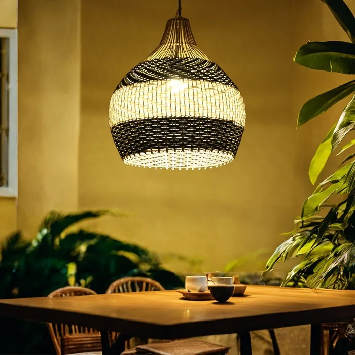 Этнический светильник ручной работы сделан из экоматериала — ротанга (очищенных и высушенных стеблей лиан).