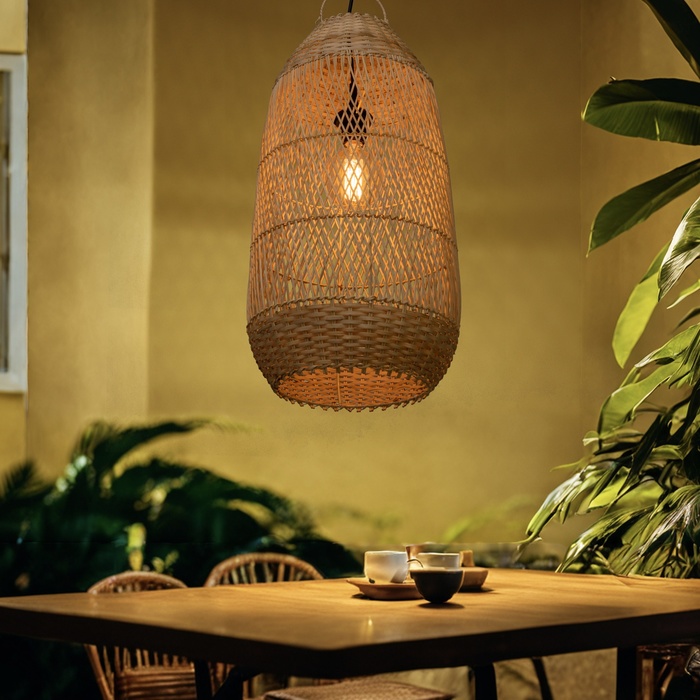 Этнический светильник ручной работы сделан из экоматериала — ротанга (очищенных и высушенных стеблей лиан).