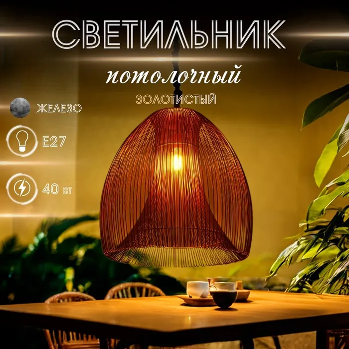 Светильник потолочный из ротанга «Эки», 1×120 Вт, Е27, 30×30×60 см — Характеристики