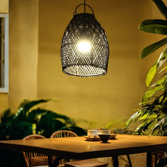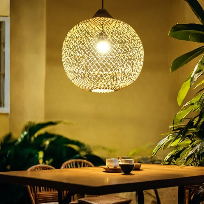 Этнический светильник ручной работы сделан из экоматериала — ротанга (очищенных и высушенных стеблей лиан).
