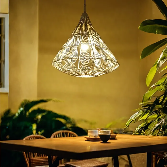 Этнический светильник ручной работы сделан из экоматериала — ротанга (очищенных и высушенных стеблей лиан).