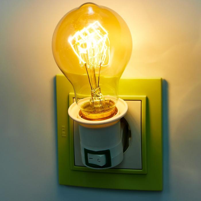 Светильник с выключателем в розетку Е27 40Вт белый 7х4,5х4,5 см — Характеристики