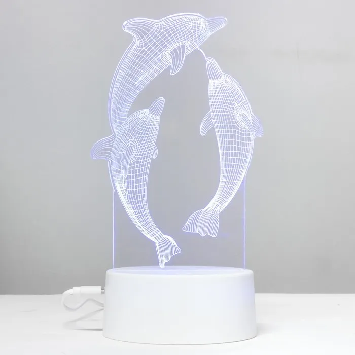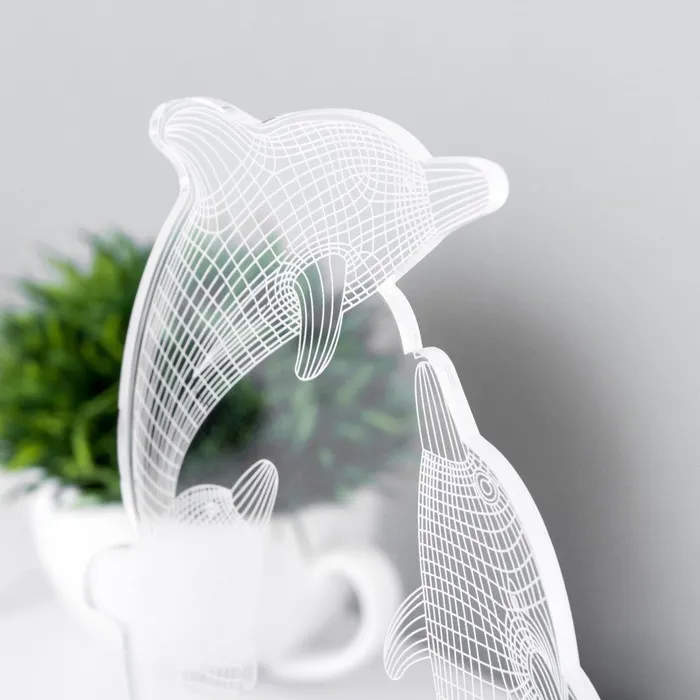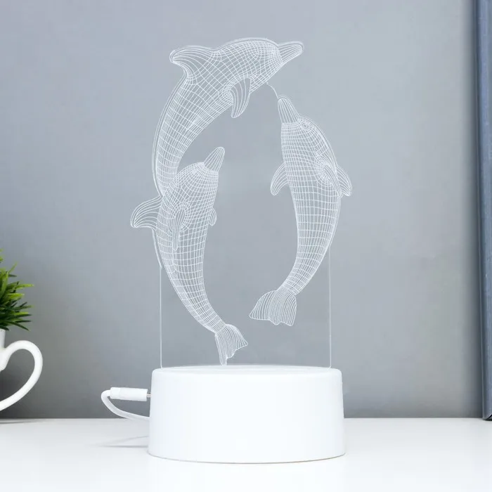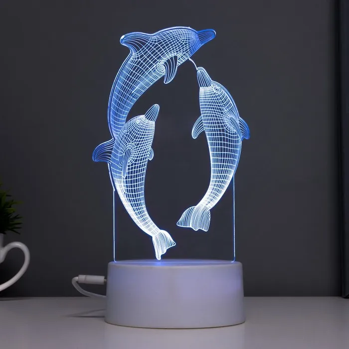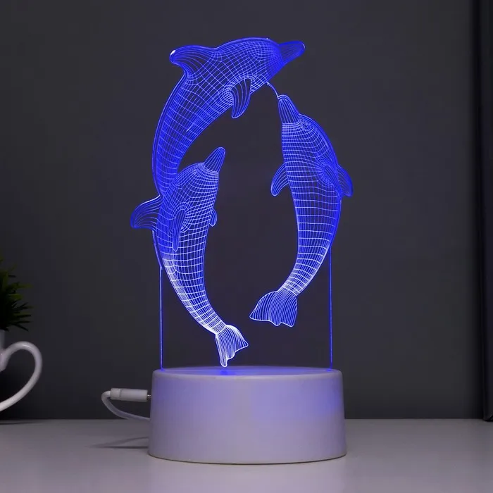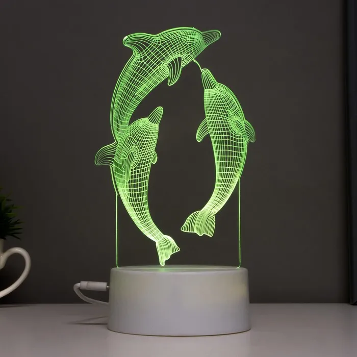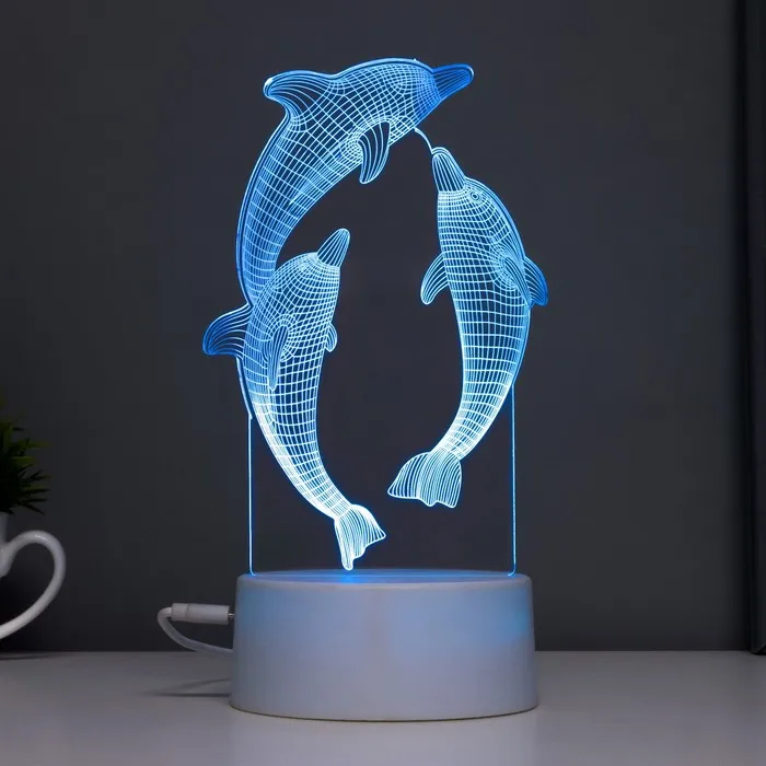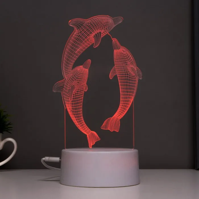 Этот оригинальный светильник в форме дельфинов добавит яркие акценты в ваш интерьер и создаст уютную атмосферу. С его помощью можно не только освещать пространство, но и менять настроение благодаря многоцветному свечению.