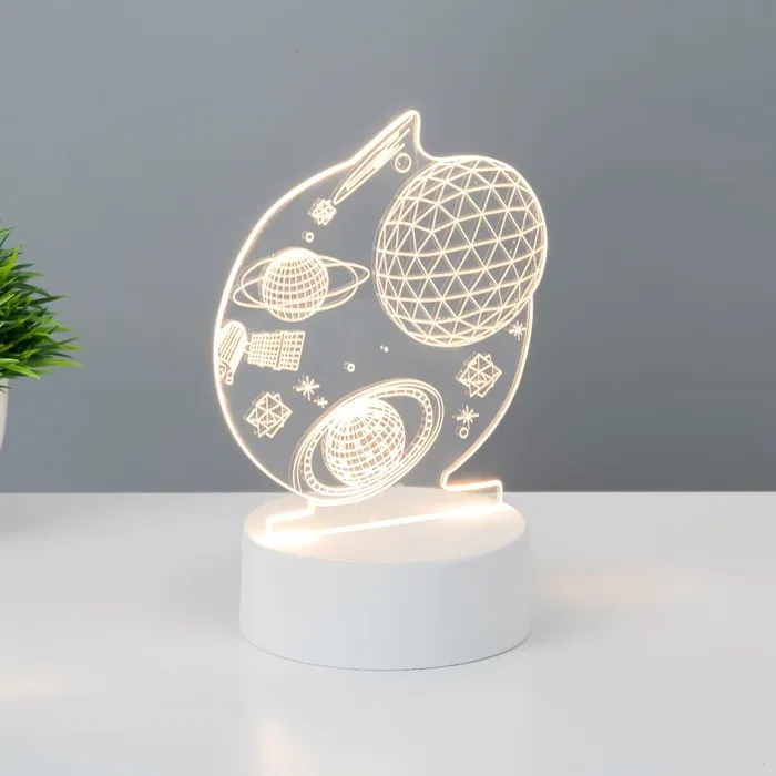 Этот светильник не только освещает, но и вдохновляет на творчество. Он станет отличным элементом декора для праздников, таких как День космонавтики, а также создаст уютную обстановку в повседневной жизни. Используйте его для оформления детской комнаты или как акцент в современном интерьере. Откройте для себя мир света и стиля с этим уникальным светильником.