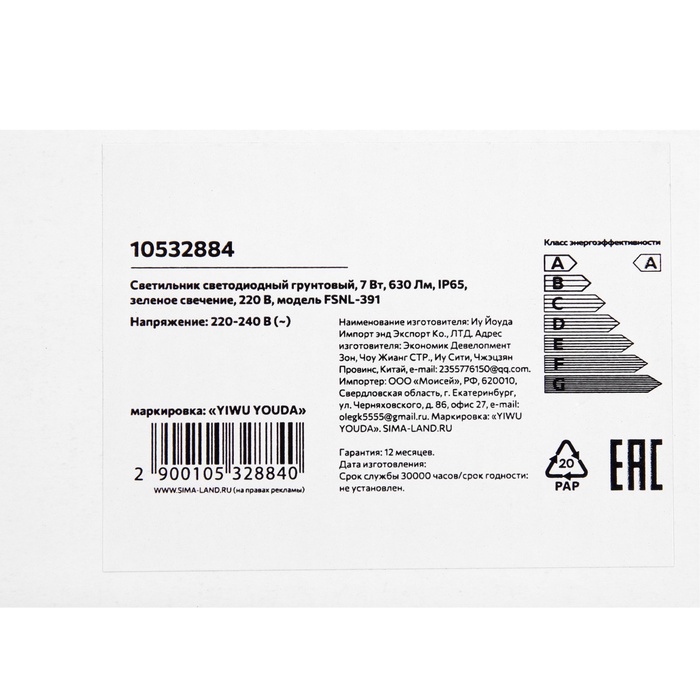 Этот светодиодный грунтовой светильник станет отличным дополнением к вашему саду, создавая приятную атмосферу и обеспечивая комфортное освещение. Наслаждайтесь вечерами на свежем воздухе с мягким, зелёным светом, не беспокоясь о расходах на электричество.