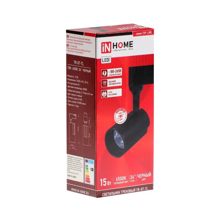 Светильник светодиодный INhome TR-07-TL, трековый, 15 Вт, 6500К, 1500 Лм, IP40 — Характеристики