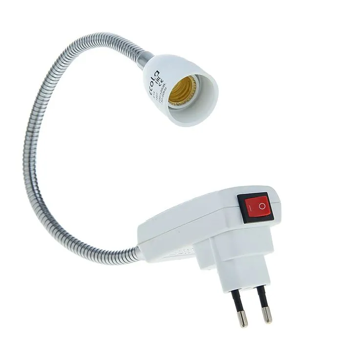 Переходник Ecola, вилка/патрон Е14, 395 × 45 мм, с выключателем, белый