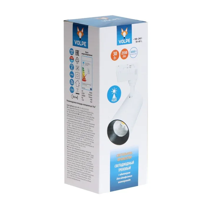 Светильник светодиодный трековый Volpe ULB-Q277, 30 Вт, 2550 Лм, 4000 К, черный — Характеристики