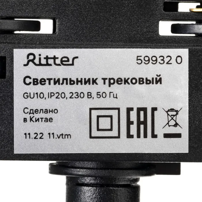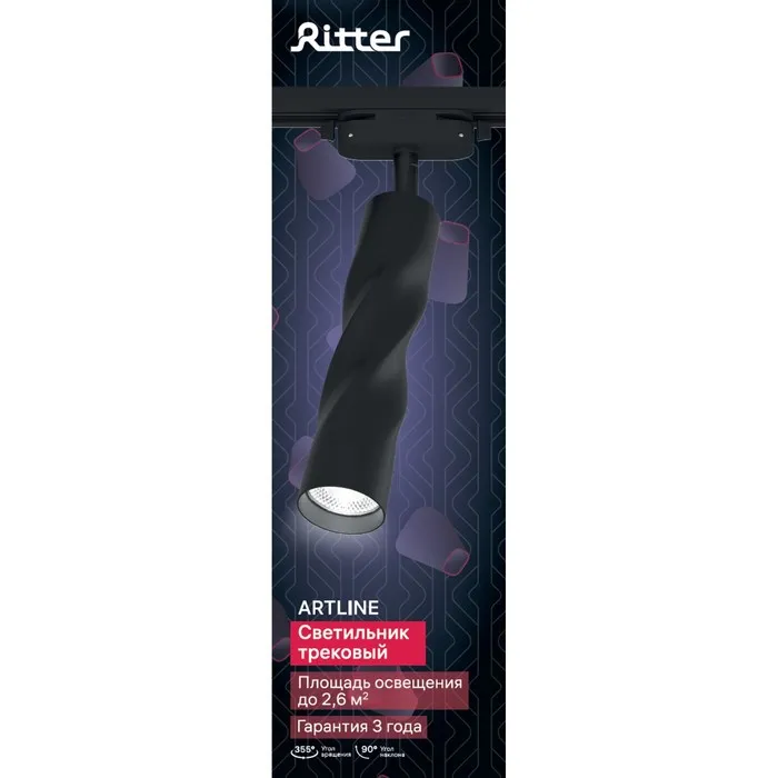 Светильник трек-й повор ARTLINE 55х200 GU10 230В алюм 2,6м²черн 59932 0 Ritter — Характеристики