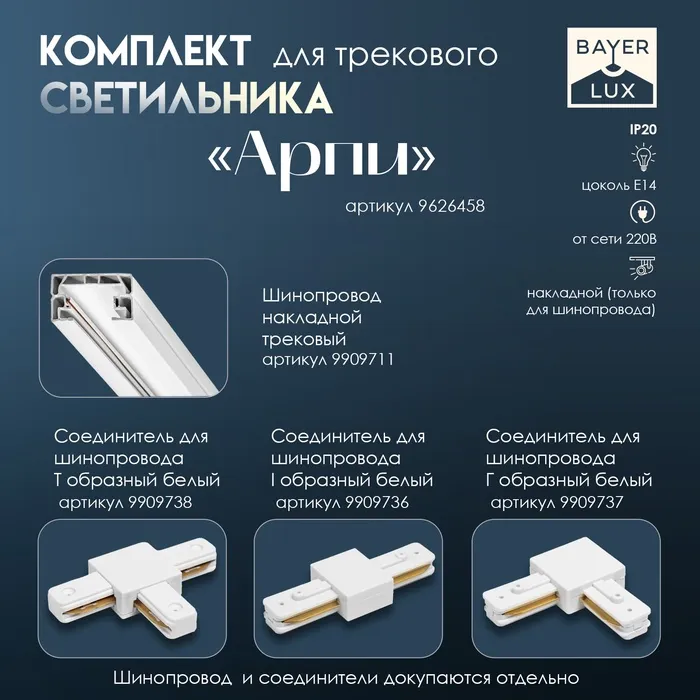 Светильник трековый Simple "Арпи" Е14 40Вт белый 15х12х18см — Характеристики