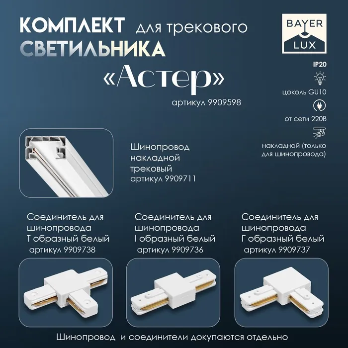 В набор входит шинопровод, соединительные элементы и светильники. Из комплектующих можно собрать систему необходимой длины и конфигурации. Светильники устанавливаются в любое удобное место, их легко передвинуть и дополнительно добавить в систему.
