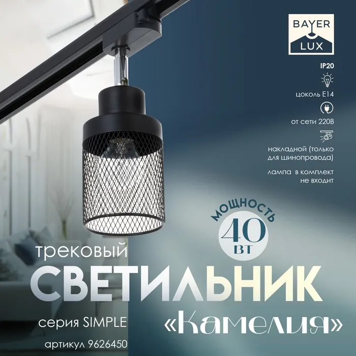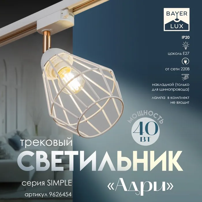 Светильник трековый Simple "Холли" Е27 40Вт белый 15х9х40см — Характеристики