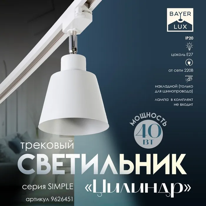 Светильник трековый Simple "Цилиндр" Е27 40Вт белый 17х12х18см — Характеристики