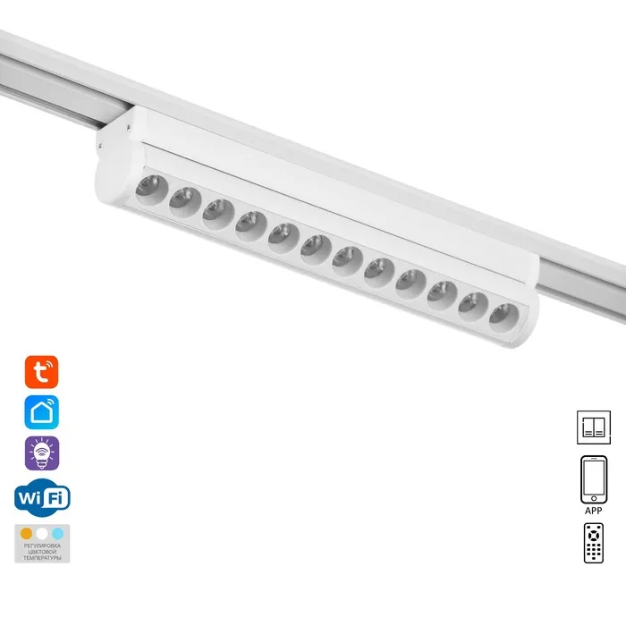 Трековый светильник Slim — это не просто источник света, а элемент современного интерьера. Его прямоугольная форма и белый цвет гармонично вписываются в любую обстановку. Возможность регулировки цветовой температуры и управления через смартфон делает его универсальным решением для любых задач: от рабочего кабинета до уютной гостиной.