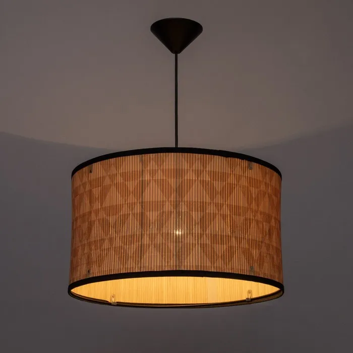 Стильный и классический аксессуар, который украсит ваш дом. С бежевым текстильным абажуром, который придаёт ему утончённый внешний вид. Цилиндрическая форма плафона направлена вниз, обеспечивая равномерное распределение света и создающая уютную атмосферу.