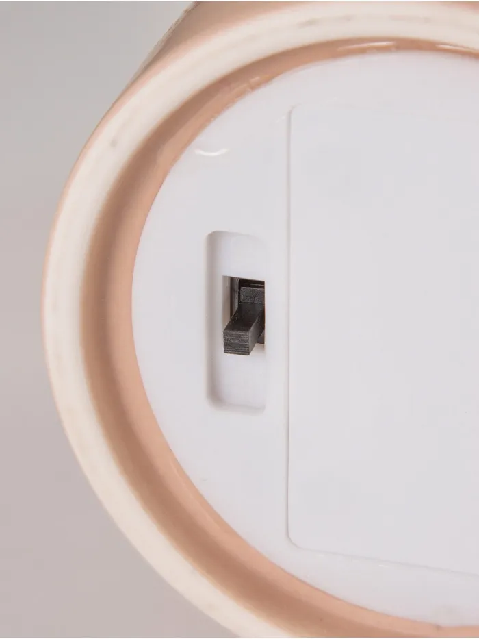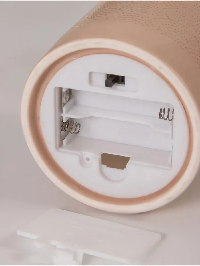 - Компактный и мобильный: Размеры светильника – 8,5 х 8,5 х 17 см. Он легко помещается на столе, полке или тумбочке, не занимая много места. Питание от двух батареек типа АА делает его независимым от розеток и удобным для использования в любом уголке дома.