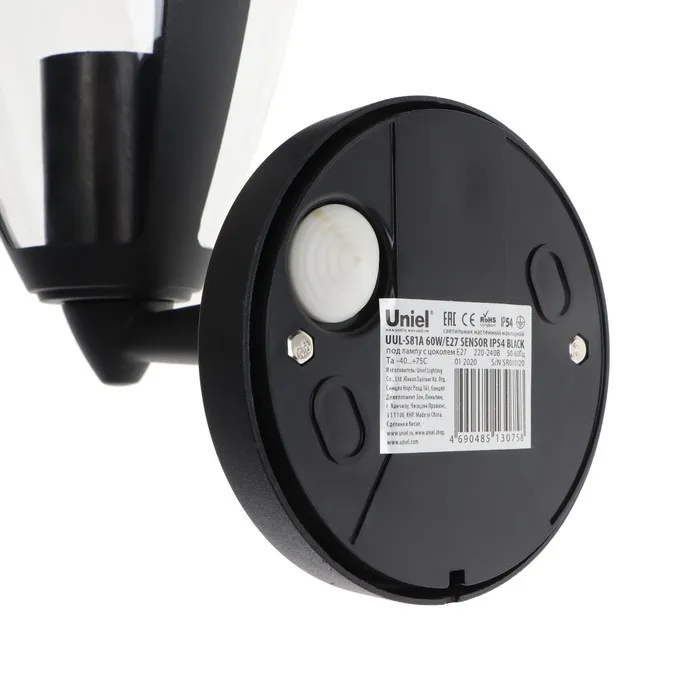 Светильник Uniel UUL-S81A, 60 Вт, IP54, Е27, уличный, сенсор, черный