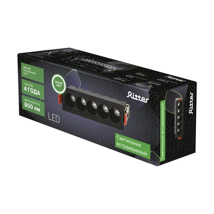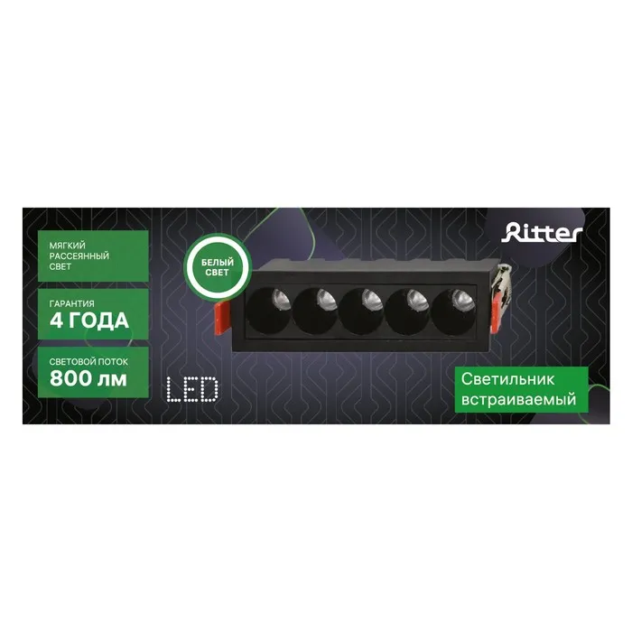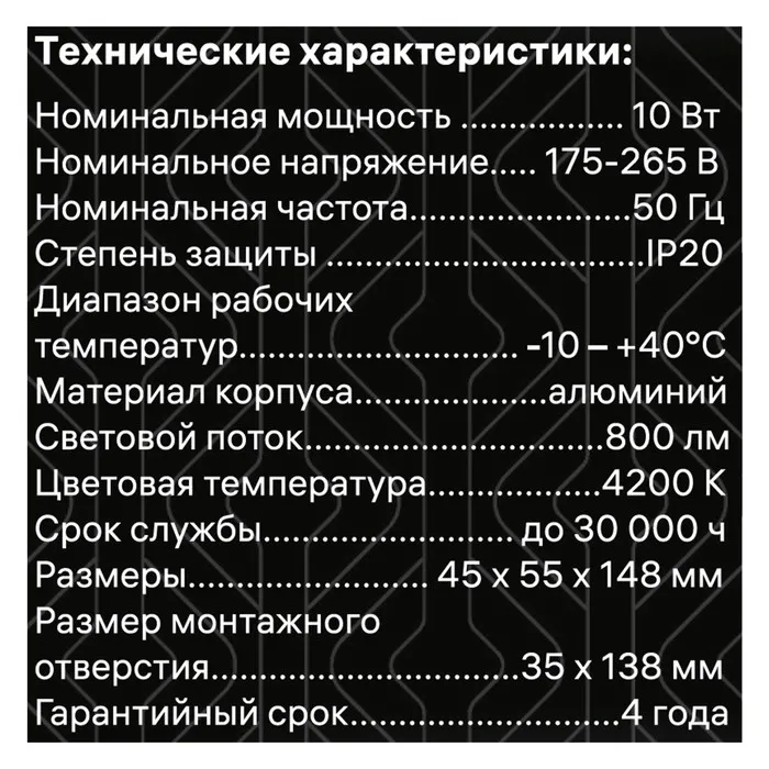 Светильник встраиваемый, ARTIN, прямоугольный 148×45х55мм LED 10Вт 800Лм 4200К Al черный — Характеристики