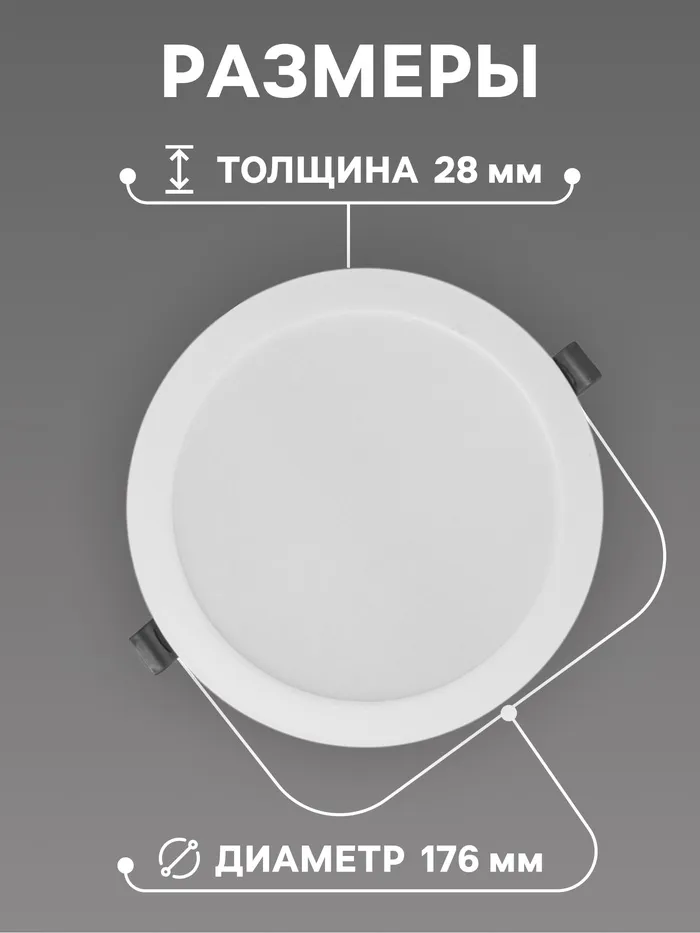 Светильник встраиваемый «Даунлайт», светодиодный, 18 Вт, 4000K, 1710 Лм, 220 В, 176×28 мм, круглый, белый — Характеристики