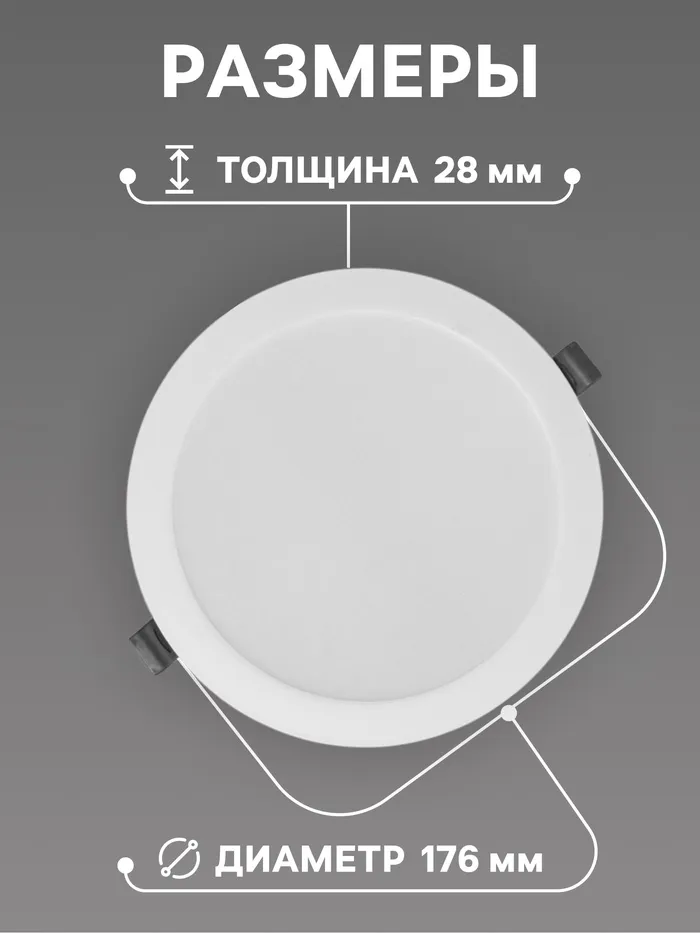 Светильник встраиваемый «Даунлайт», светодиодный, 18 Вт, 6500K, 1710 Лм, 220 В, 176×28 мм, круглый, белый — Характеристики
