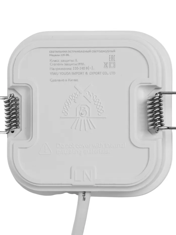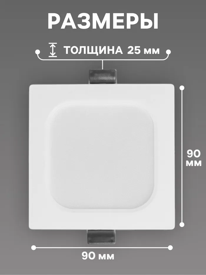 Светильник встраиваемый «Даунлайт», светодиодный, 5 Вт, 6500K, 475 Лм, 220 В, 90×25 мм, квадратный, белый — Характеристики