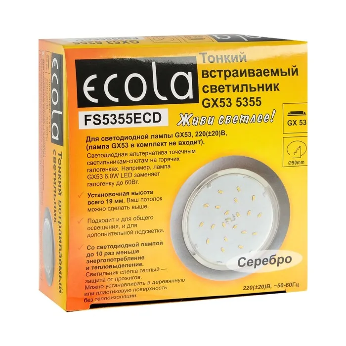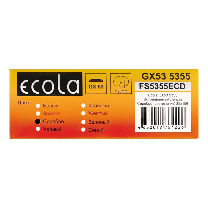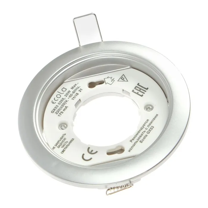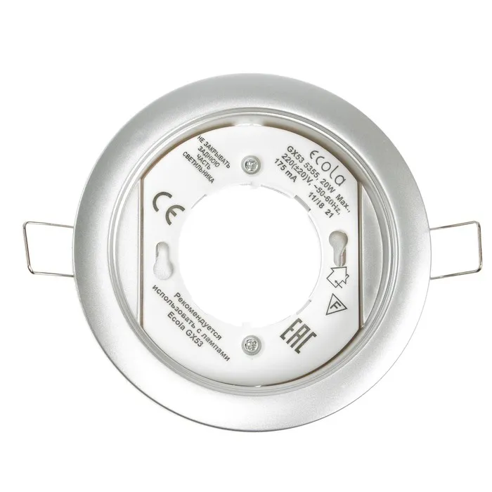 Светильник встраиваемый Ecola 5355, GX53, IP20, 220 В, 25x106 мм, круглый, серебро — Характеристики