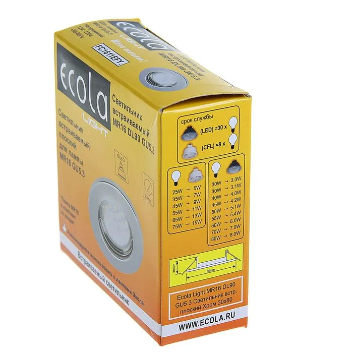 Светильник встраиваемый Ecola, DL90, MR16, GU5.3, 30 x 80 мм, плоский, цвет хром — Характеристики