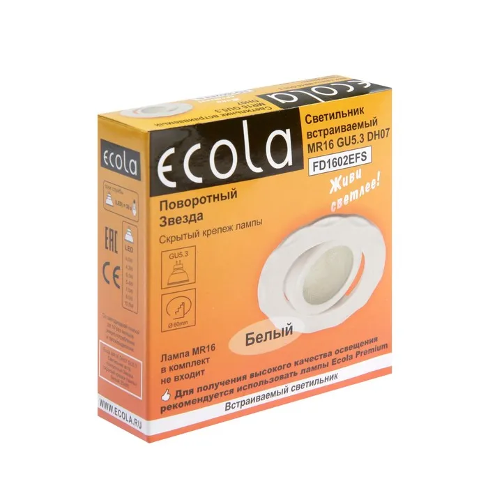 Светильник встраиваемый Ecola, GU5.3, DH07, MR16, 25x88мм, звезда, поворотный, белый — Характеристики