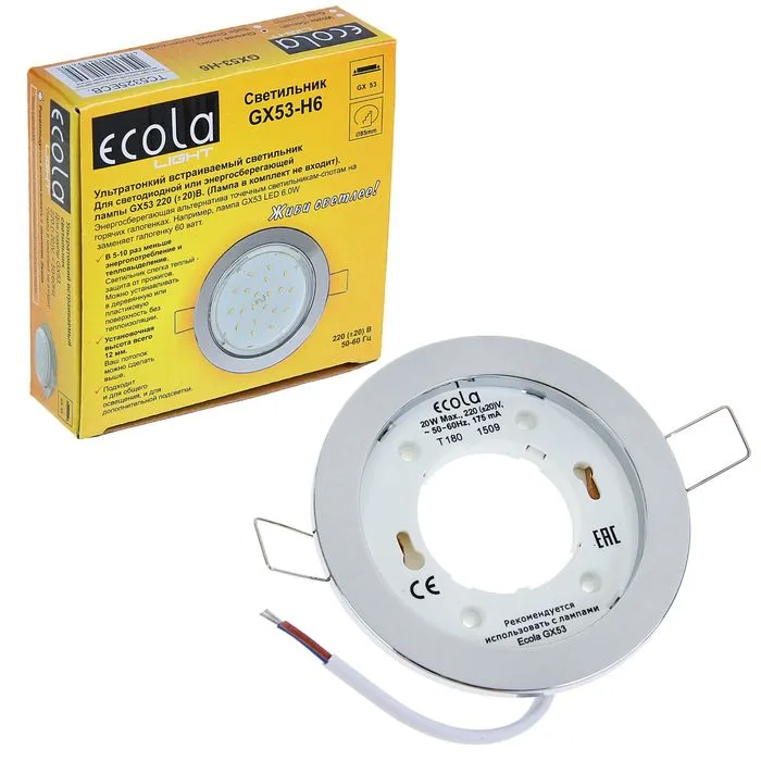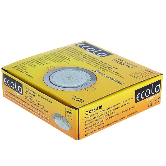 Светильник встраиваемый Ecola, H6, GX53, 20 Вт, 101x16 мм, плоский, цвет хром — Характеристики