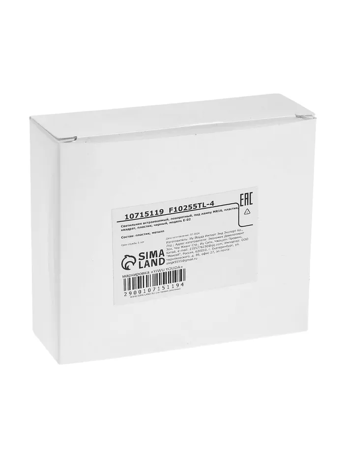 Светильник встраиваемый под лампу MR-16, поворотный, квадратный, пластиковый, чёрный — Характеристики